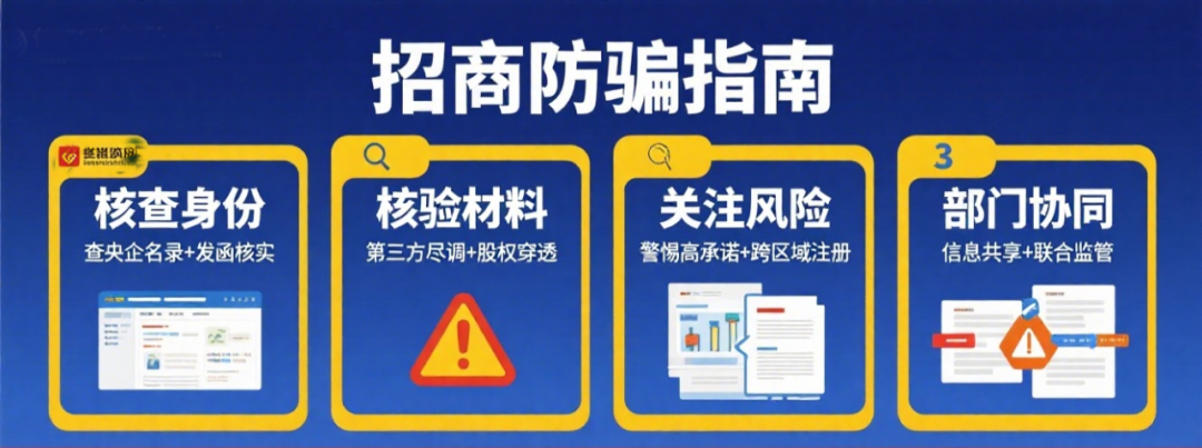 对地方招商人员而言,需建立“全流程防骗意识”,聚焦“源头核查、项目审查、流程管控”三大环节,具体操作如下。